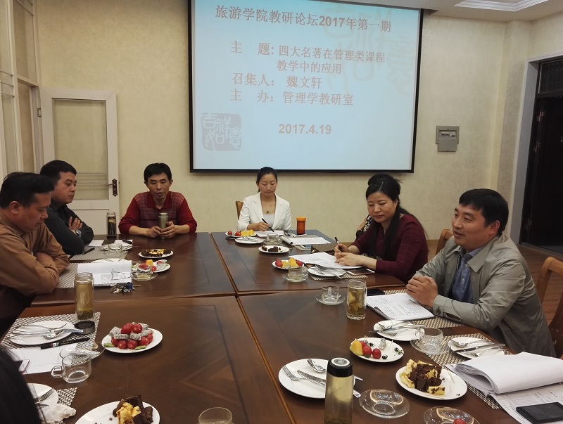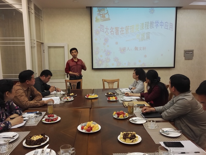 4月19日上午10点, 四虎影院 管理学教研室主办的 四虎影院 2017年第一期教学沙龙在经管楼302(西餐模拟室)成功举办。管理学教研室主任魏文轩教授做了题为“经典名著在管理类课程教学中的应用”的教学分享。