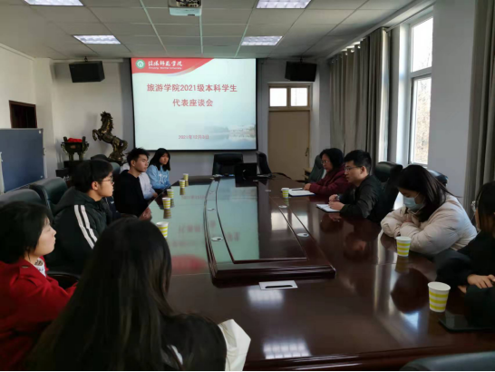 为倾听学生心声,了解学生需求,促进学院人才培养,12月3日, 四虎影院 在经管楼404会议室召开2021级学生代表座谈会。教学院长江晓晗、学院副书记路璐、教学秘书王晓璐等出席了座谈会。