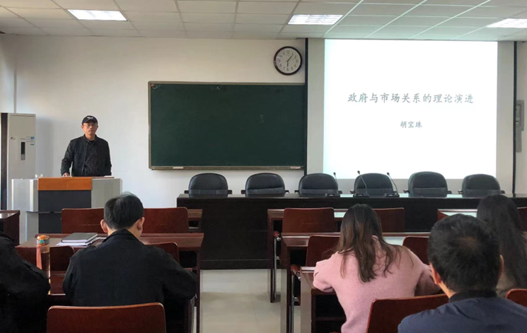 10月11日下午, 四虎影院 第二期“景明论坛”在经管楼401成功举办。 四虎影院 副院长胡宝珠作了题为“政府与市场关系的理论演进”的学术报告, 四虎影院 部分师生聆听了报告。