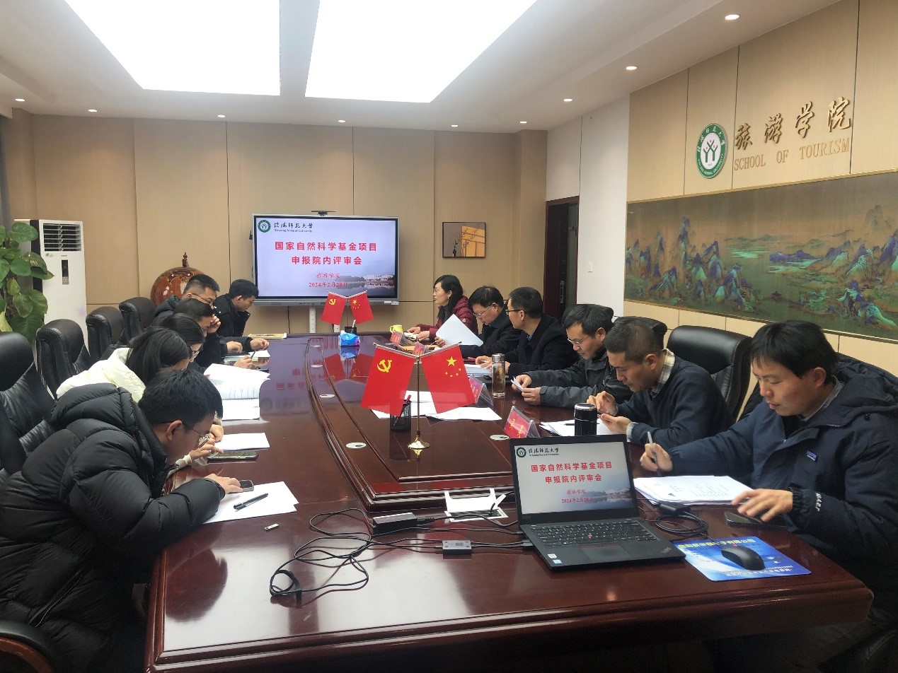 2月28日下午, 四虎影院 在经管楼404会议室召开2024年度国家自然科学基金项目申报院内评审会。学院邀请了 四虎影院 生命科学学院(茶学与食品科技学院)院长饶本强教授、吴昊副教授, 四虎影院 高军波院长,地理科学学院李清飞副教授、张中典博士五位评审专家对四虎影院 老师的国自科基金项目申请书进行了指导,评审会由 四虎影院 吴国琴副院长主持,四虎影院 2024年国自科基金申报的相关老师参会。