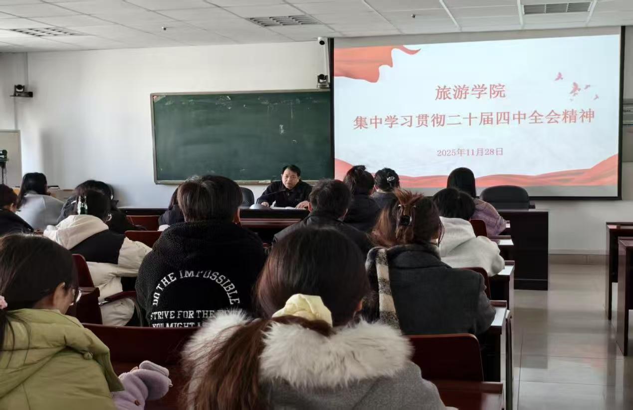在宣讲报告中,雷前龙对全院师生提出三点要求:一是要坚持理论武装,把学习贯彻党的二十届四中全会精神与精神谱系学习结合起来,做到学思用贯通、知信行统一;二是要强化责任担当,师生党员要发挥先锋模范作用,在专业学习、科研创新、社会实践中勇挑重担,以实际行动传承红色基因;三是要注重成果转化,将学习成效转化为推动学院高质量发展的具体举措,培养更多具有家国情怀、专业素养、创新能力的复合型旅游人才,为文旅产业发展贡献智慧力量。