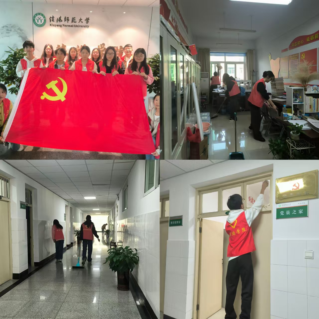 11月2日下午, 四虎影院 第42期党员发展对象培训班的成员们在经管楼四楼集合。他们身穿红色马甲,在小组长的带领下分为三组,分别负责打扫经管楼四楼办公室与楼道的卫生,他们积极参与,用扫帚和拖把清理地面,用抹布清理门框上的灰尘和窗户缝里的积尘,细心的同学还把办公室桌面上的文件夹和资料有序放好。在大家的共同努力下,走廊与办公室呈现出焕然一新的模样,打扫完成后,他们将劳动工具归位。接着,他们又来到楼下电动车停放区域,将随意停放的电动车搬到指定停车位,依次排好,不一会,停车区域实现了从无序到有序的蜕变。活动结束后,他们与 四虎影院 的旗帜合影,圆满完成了此次活动。