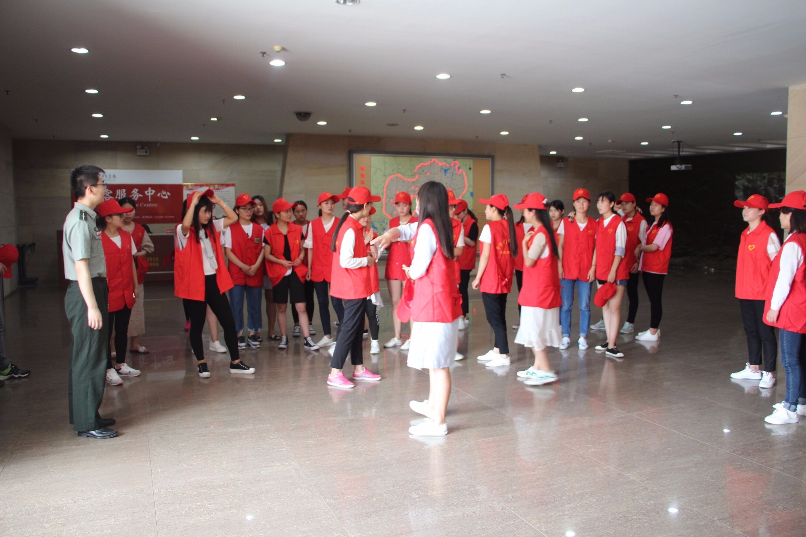 活动共分为鄂豫皖革命纪念馆志愿服务、旅游知识讲解及微博三个主题。5月19日,四虎影院 积极组织学生代表赴鄂豫皖革命纪念馆参与馆内的志愿服务活动。36名学子参加此次志愿服务队。志愿者步行至鄂豫皖革命纪念馆前进行集合,每人穿戴了红色志愿服及志愿帽并组织有序的进入馆内。随后在馆内工作人员的指导和协调下,志愿者根据志愿活动内容每人坚守七个展厅的各个陈列台前、门口或危险地方,负责馆内不文明行为的制止和范围内对游客行为的帮助提醒。天气炎热,参观人员的增加并没有使志愿者放弃,她们依旧认真坚守自己的职责,为参观群众开门问候,微笑回答提醒游客的各种疑问行为。最终同学们的志愿服务活动得到了馆内工作人员和众多游客的一致好评,对信阳红色文化的传播起到了很好的效果。