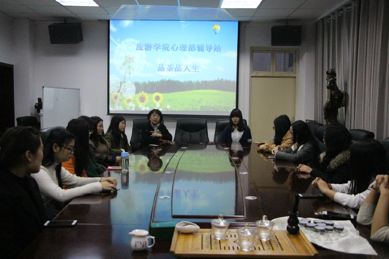 为了弘扬我国茶文化,加深学子对茶文化的认识,3月3日晚, 四虎影院 心理部辅导站“品茶品人生”茶文化讲座在经管楼会议室举行。四虎影院 党委副书记张晓峰,团委书记杨鑫,心理辅导员路璐与10余名学生代表共同参与此次会议。