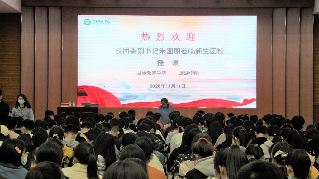 为加强团史团情教育,培养担当民族复兴大任的时代新人,11月11日晚, 四虎影院 和国际教育学院在逸夫楼报告厅顺利举行2020级新生团校授课活动,校团委副书记朱国朋主讲,国际教育学院党委副书记姚新春主持。