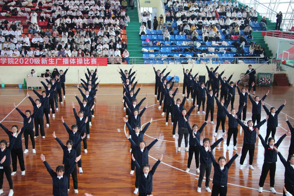 为丰富校园文化生活,增强大学生体质。学校2020年新生广播体操比赛于2020年11月29日下午在学校体育馆内如期举行。本次比赛共有各学院二十支队伍参赛,比赛由地理科学学院承办。