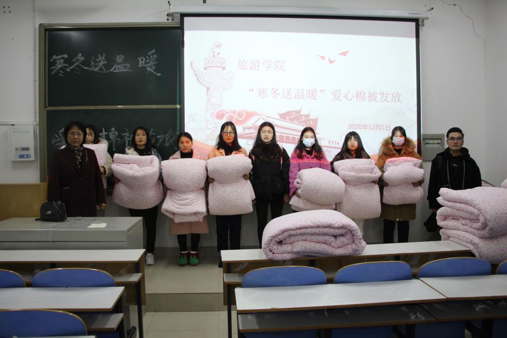 寒风冷刺骨,关怀暖人心。为了贯彻落实好“精准资助”政策, 四虎影院 于12月1日在经管楼106举行了“寒冬送温暖”爱心棉被发放活动。届时,由 四虎影院 副处级辅导员路璐,旅游管理学院专职辅导员黄倩、赵子鉴参加了此次活动。