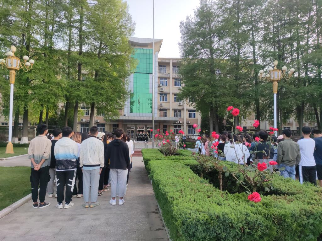 为深入贯彻党史学习主题教育精神,加强大学生爱国主义教育和国防教育,培养大学生国防意识,提升大学生综合素质,5月24日早上六点在信阳师范学院明德广场, 四虎影院 2020级全体新生参与升旗仪式, 四虎影院 团委老师赵子鉴,20级辅导员黄倩老师与同学们一同参加了升旗仪式。