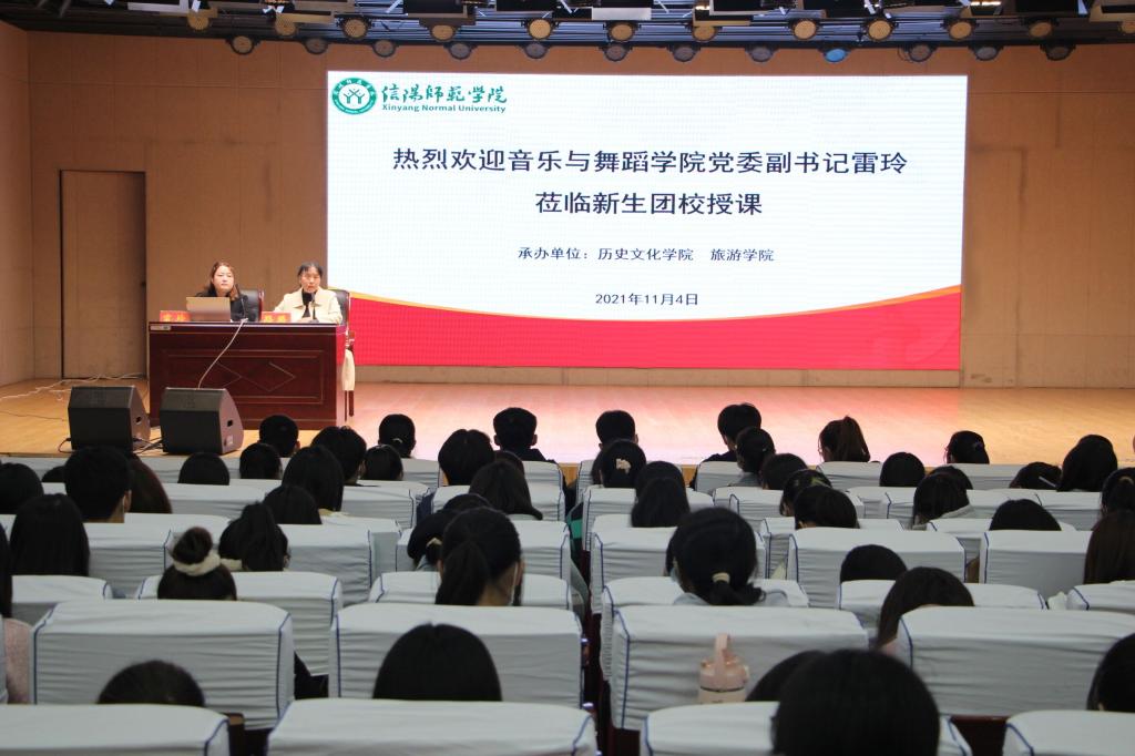 为强化新生团员政治意识,提高新生团员思想觉悟。11月4日, 四虎影院 在理科楼报告厅开展新生团校学习活动。本次新生团课由音乐与舞蹈学院党委副书记雷玲老师主讲, 四虎影院 党委副书记路璐老师主持,团委书记赵子鉴及学院2021级全体新生参与本次活动。