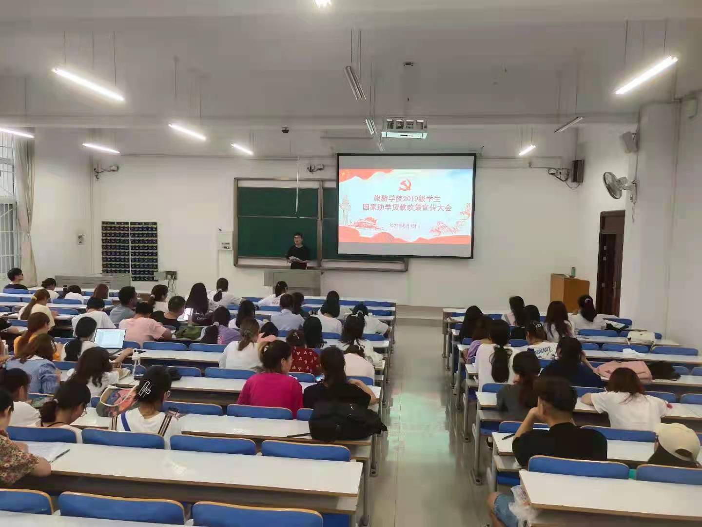 为了加强学生对国家教育资助政策的了解, 普及家庭经济困难学生资助知识,让学生进一步深入了解国家教育资助政策, 四虎影院 2021年6月17日晚组织2019级全体学生开展助学贷款政策宣传大会。