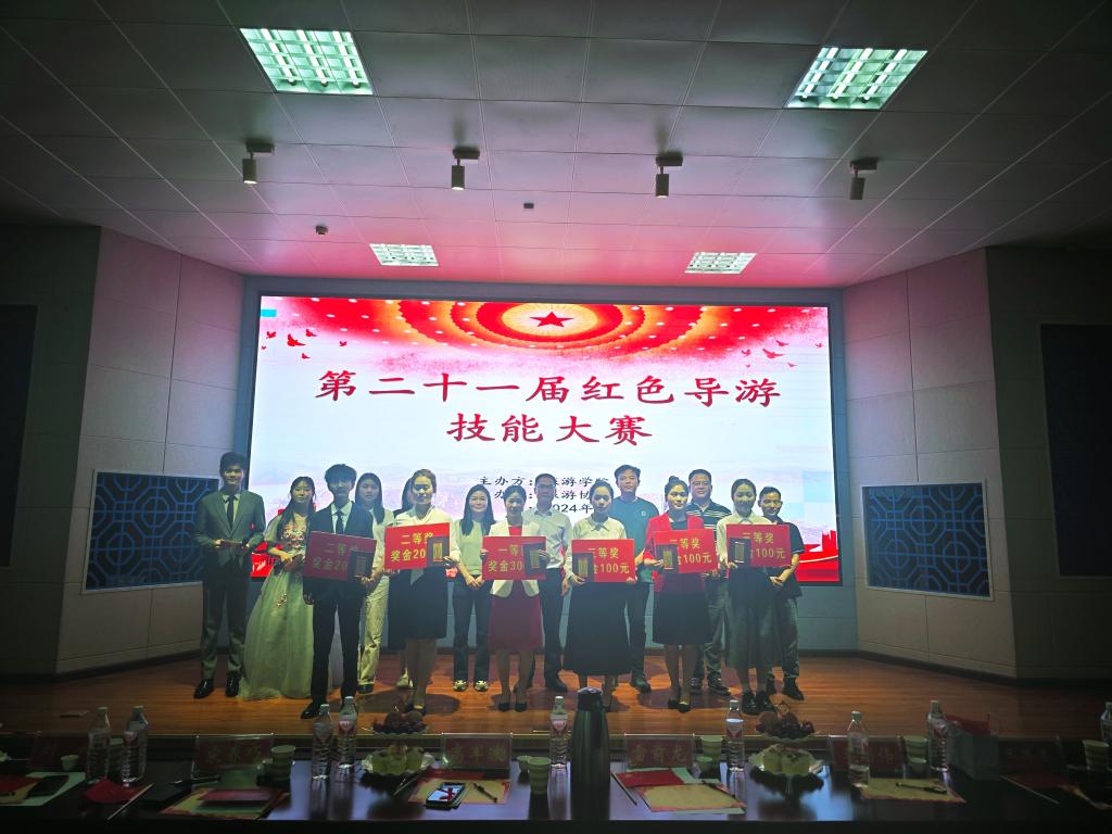 为培养能讲好中国故事的高素质技能人才,把红色资源利用好、把红色传统发扬好、把红色基因传承好,6月11日晚, 四虎影院 于土木楼601举办第二十一届红色导游技能大赛。 四虎影院 党委书记雷前龙、院长高军波和2023级全体师生参加了本次活动。