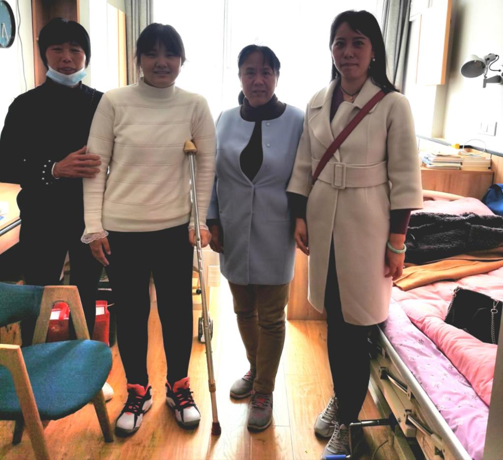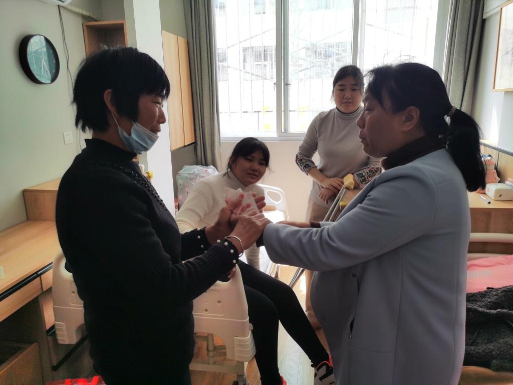 党委副书记路璐和心理专干闫会姝一同前往7号宿舍楼爱心小屋,探望寒假受伤的2021级旅游管理二班的靳蕊。