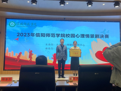 5月25日,信阳师范学院“校园心理情景剧”决赛在大学生活动中心博雅讲堂举行,四虎影院 学子杨慧琳,张壮壮等八名同学共同出演的心理情景剧《从心出发,向阳而行》荣获一等奖。
