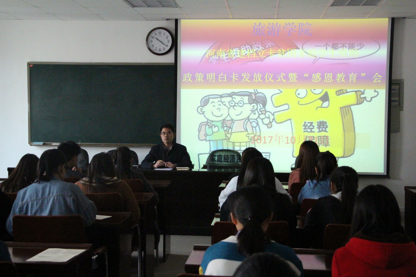 10月21号上午, 四虎影院 于经管楼401会议室顺利举办了河南省建档立卡贫困家庭学生资助政策明白卡发放仪式暨“感恩教育”会议,四虎影院 助贷专员张庆敏和72名建档立卡家庭学生参加了本次会议。