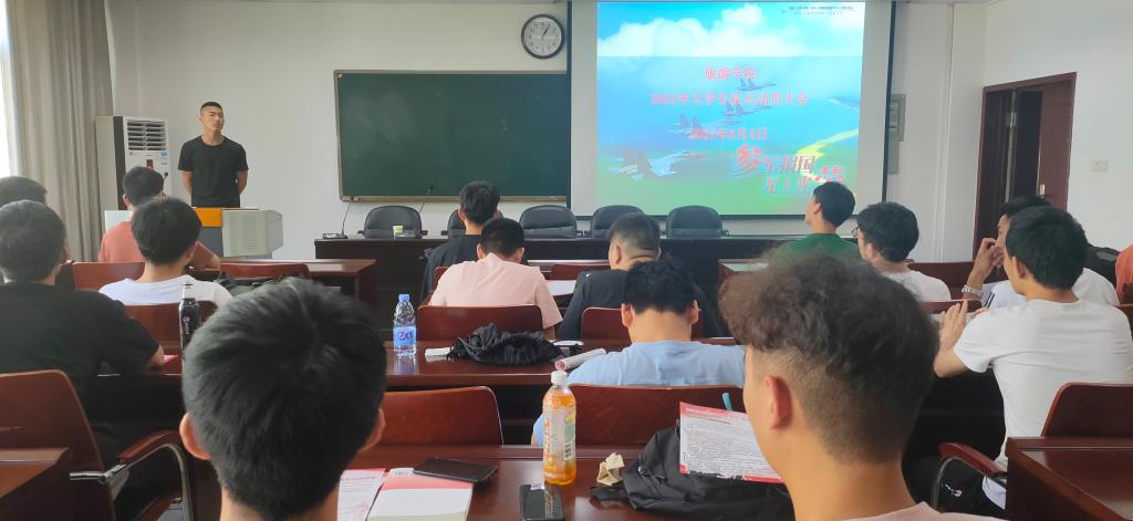 为增强大学生投身国防的意识,增进对军队建设及征兵政策的了解,6月4日,信阳师院 四虎影院 大学生应征入伍动员会在经管楼401举行。 四虎影院 团委老师赵子鉴、退伍军人李建新以及19、20级全体男生参加了此次动员会。