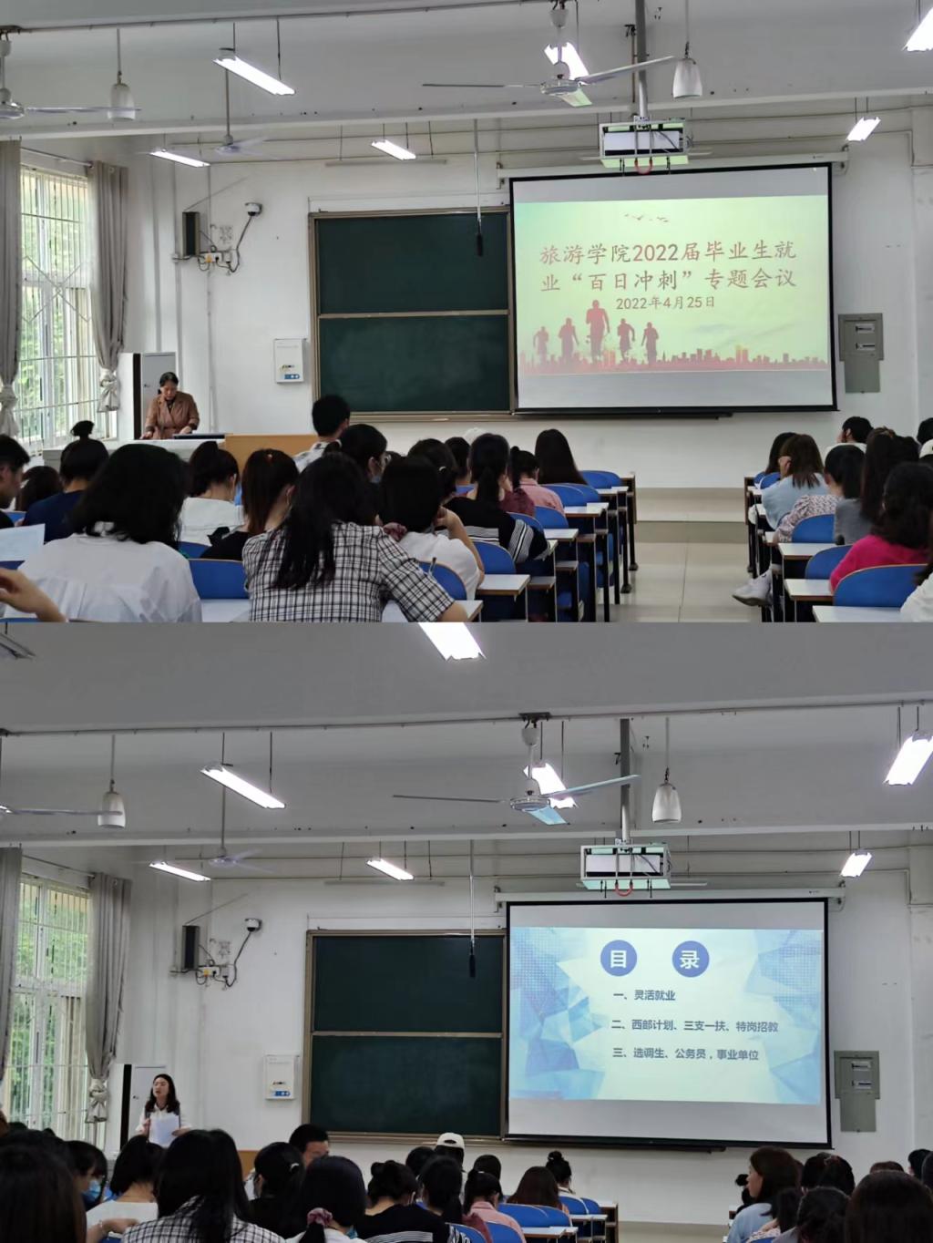 2022年4月25日下午,为切实做好四虎影院 毕业生就业工作,缓解当今大学毕业生就业压力, 四虎影院 在经管楼201召开2022届毕业生就业“百日冲刺”专题会议。 四虎影院 副书记路璐、就业秘书黄倩、18级全体学生参加会议,会议由副书记路璐主持。