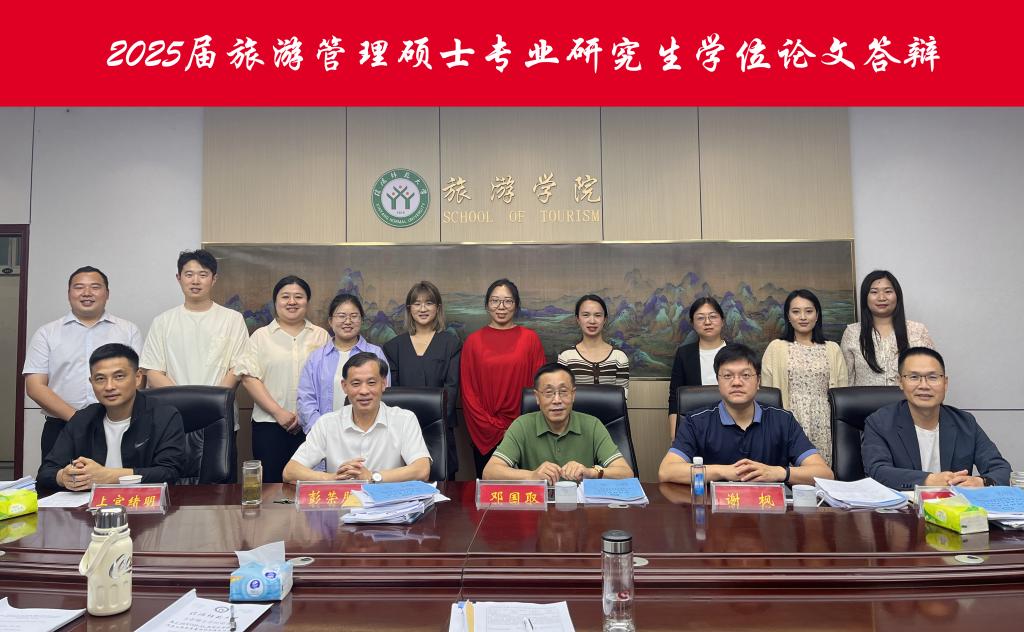 答辩会上,参加答辩的10位研究生围绕选题背景和意义、研究内容、研究思路与方法、研究结论以及研究创新等内容依次做了汇报。评委逐个指出每位同学论文的不足之处并进行了质疑,随后,同学们对评委提出的问题进行了详细作答。最后,经答辩委员会讨论及投票表决,认为10位同学的论文均达到了旅游管理硕士专业学位论文的水平,同意通过硕士学位论文答辩。