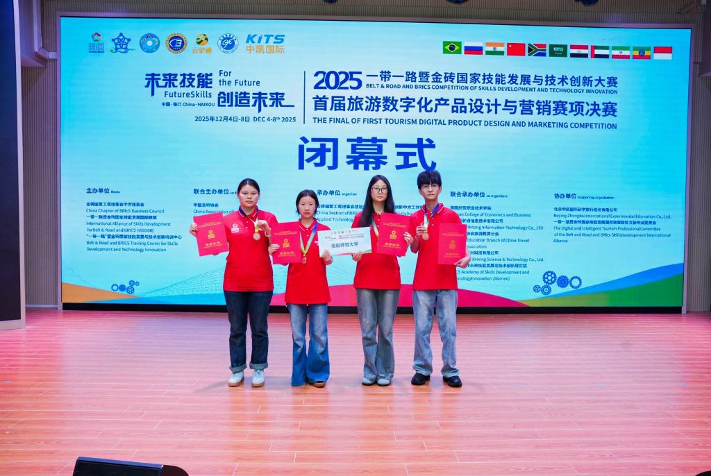 近日,由“一带一路”暨金砖国家技能发展国际联盟、“一带一路”暨金砖国家技能发展与技术创新培训中心主办,中国发明协会、教育部中外人文交流中心联合主办的2025“一带一路”暨金砖国家技能发展与技术创新大赛之首届国际研学课程设计与实施创新赛项、首届旅游数字化产品设计与营销赛项全国总决赛在重庆和海口相继落下帷幕。 四虎影院 作品分获“国际研学课程设计与实施创新赛项”三等奖(参赛学生:李明璁、吴思妤、佟晴欣、肖艳,指导教师:宋春巧)、“旅游数字化产品设计与营销赛项”三等奖(参赛学生:张馨方、万硕、赵婉婉、常顺,指导教师:魏超)。