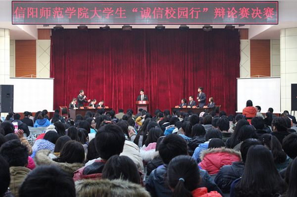 唇枪舌战展风采,魅力无限秀青春。12月15日下午,逸夫楼多功能报告厅内热闹非凡,座无虚席, 四虎影院 “诚信校园行”辩论赛决赛在此举行。校党委副书记、工会主席余作斌,党委宣传部、学工部、校团委领导、工商管理学院党总支副书记李辉,经济学院党总支副书记房加帅等莅临本次比赛,院长办公室副主任李辉,招生就业处副处长郭鹏,文学院杨帆老师,数学与信息科学学院王娟老师,组织部胡波等担任评委,与400余名学生一同观看了决赛。
