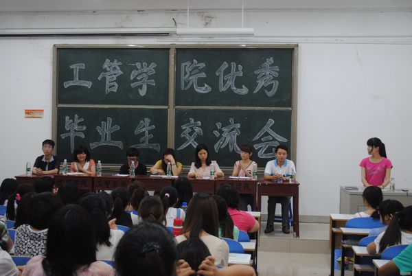 5月28日,工商管理学院在经管楼103教室举行优秀毕业生交流会,该院团总支书记周明成出席交流会,与该学院200余名学生共同聆听了梁瑞瑞、何佳欢、王幸德等七名优秀毕业生的考研求职经验。