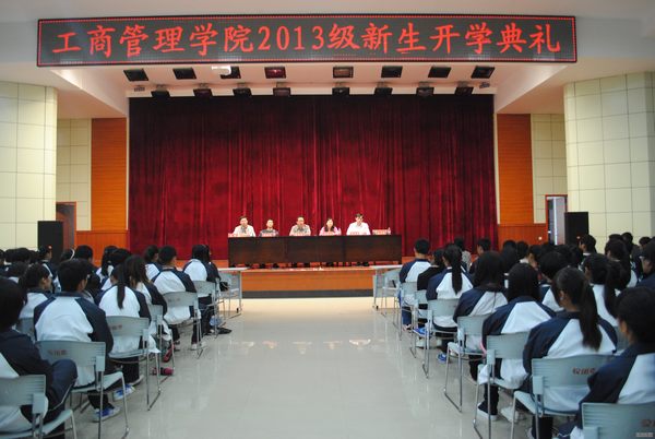 典礼在雄壮激昂的国歌声中拉开帷幕。曹明贵代表学院向13级新生致欢迎词,他援引实例告诉同学们明确人生目标的重要性,他要求全体新生抓住机遇,有效规划大学生活,明确自身定位,找准奋斗目标,书写精彩人生,并对新生提出三点希望。一是希望新生注重细节,扎实基础,积极参与各项活动,在学习与实践中陶冶情操、磨砺意志、提升品质,成为有理想、有抱负、勇担当的新时代青年。二是希望新生尽快掌握求知方法,努力适应时代要求,培养专业技能,丰富内涵,完善自我,提升动手能力。三是希望新生修身养性,树立诚信之风,善于把握机遇,勇于迎接挑战,在奋斗中坚持前行,度过美好的大学时光。彭荣胜发表讲话,他简要介绍了学院的专业设置、培育目标、具体要求和专业特色等概况,鼓励同学们学习好专业知识,培养创新精神、社会责任意识、语言表达能力,同时要扩阔视野,提升科学文化素养与实践动手能力,他依据多年经验向新生提出具体的学习建议。10级会计学班安静,13级会计2班邹妍君分别作为老生代表和新生代表发言。李保红站在教师和大学生家长的角度,从学生实际出发,向新生提出几点建议。她希望新生树立学习生活目标,周密规划人生发展,希望同学们迅速转变角色和学习方法,学会思考,学会自主学习,学会将理论与实际相结合,培养批判性思维和创新能力,她还希望青年学子们培养情商,提高综合素质,团结合作,锻炼交流与沟通能力,用现在的奋斗为未来留下无悔回忆,用自己的付出塑造成功人生。李辉总结会议。