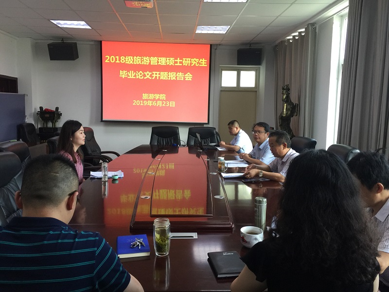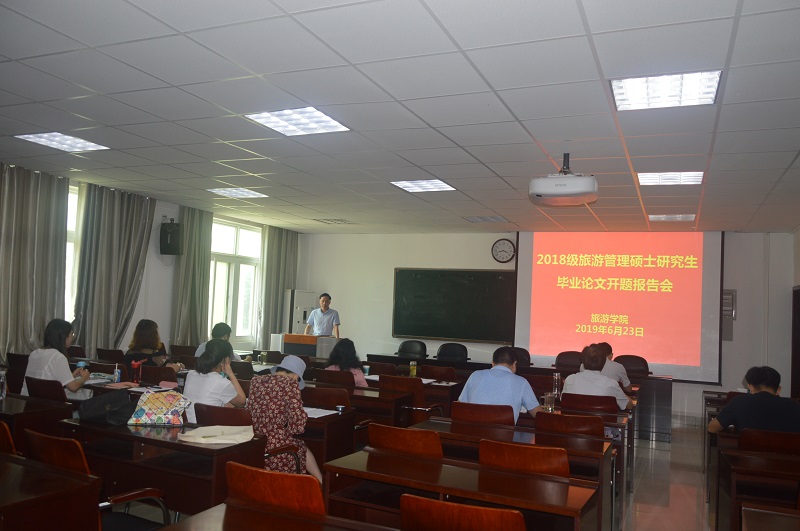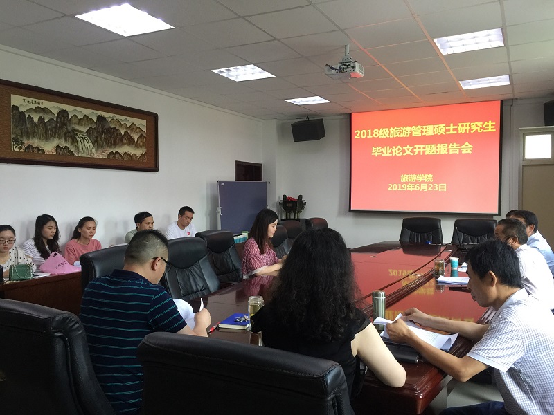 6月23日上午, 四虎影院 2018级旅游管理硕士研究生毕业论文开题报告会分两组在经管楼401和403会议室同时举行。 四虎影院 院长彭荣胜教授和洛阳师范学院程金龙教授分别任两组评审小组组长并主持报告会。