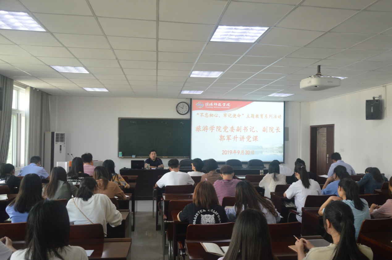 9月30日,副书记、副院长郭军升以“坚守教育报国初心,勇担立德树人使命”为题,在经管楼401会议室作了一次生动的党课。 四虎影院 教工第三党支部党员、经济学教研室教师、2018级旅游三班学生参加了这次活动。