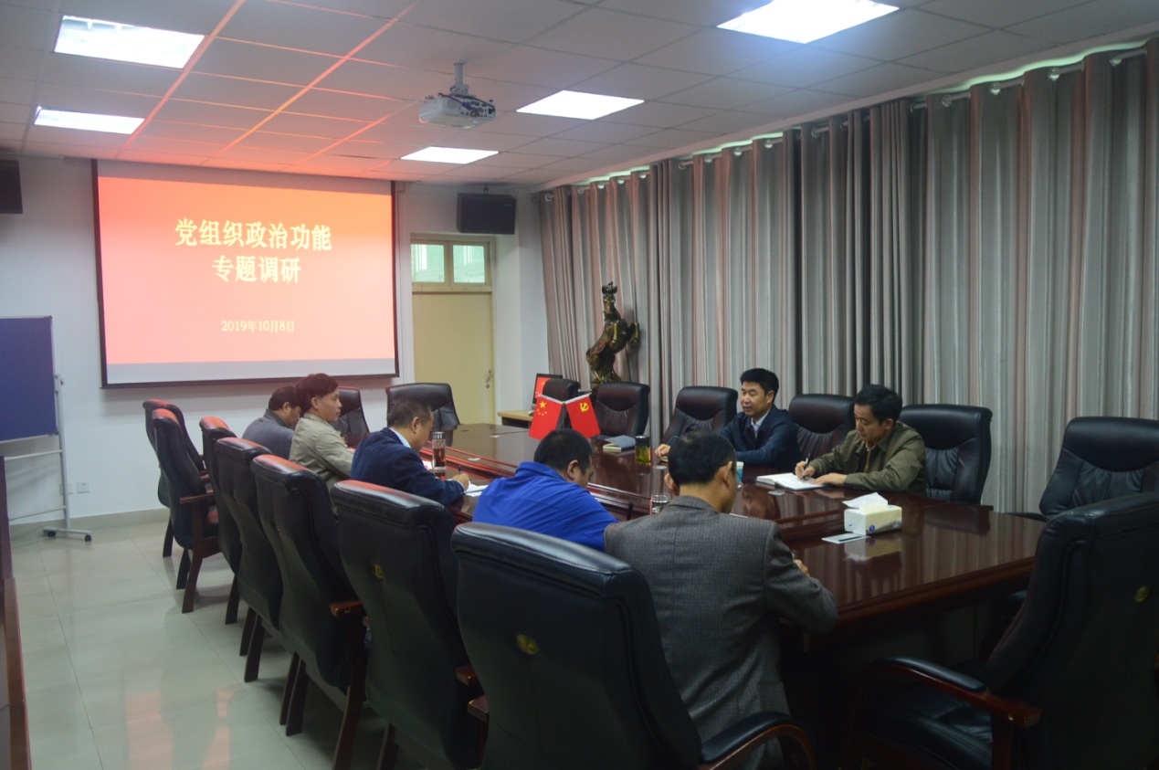 10月8日下午,校党委书记宋争辉带领党办副主任李周、党办文字秘书丁其科到 四虎影院 开展党组织政治功能发挥专题调研。 四虎影院 党委书记曹明贵、院长彭荣胜、副院长潘国兵、党委副书记张晓峰、党委委员胡宝珠参加了调研会。