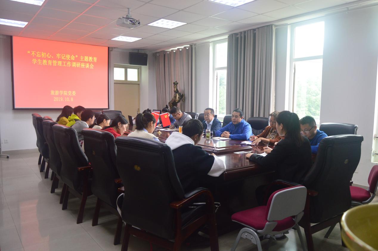 10月8日, 四虎影院 在经管楼403召开“不忘初心,牢记使命”主题教育学生教育管理工作座谈会。党委书记曹明贵、党委副书记张晓峰、专职辅导员、学生代表参加此次座谈会。会议由张晓峰主持。
