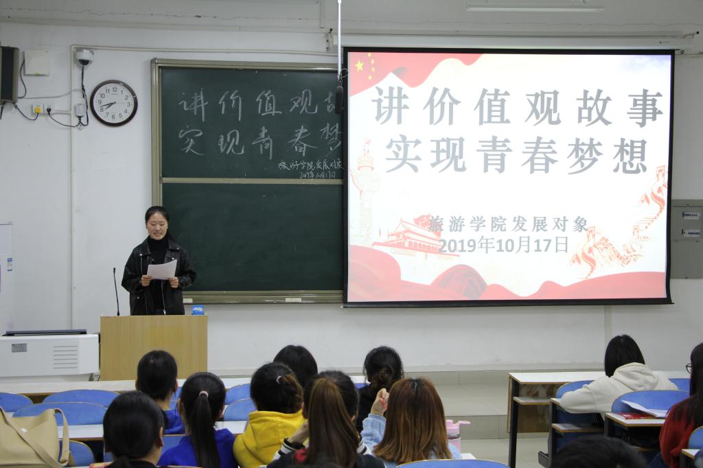 为发挥优秀学生党员榜样示范作用,帮助新一期发展对象进一步端正入党动机,10月17日, 四虎影院 于经管楼204举办主题为“讲价值观故事,实现青春梦想”的示范教育活动,四虎影院 正式党员郭明月、仝爽爽、贾蒙蒙和本次发展对象参加此次活动。