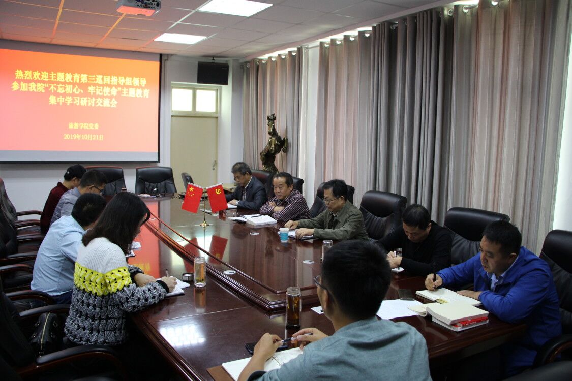 10月21日,校“不忘初心,牢记使命”主题教育第三巡回指导组组长、正处级组织员刘根货,成员、组织部副部长姜兴周参加四虎影院 集中学习交流。四虎影院 党委书记曹明贵、副院长潘国兵、党委副书记张晓峰和党支部书记参加了会议。会议由曹明贵主持。