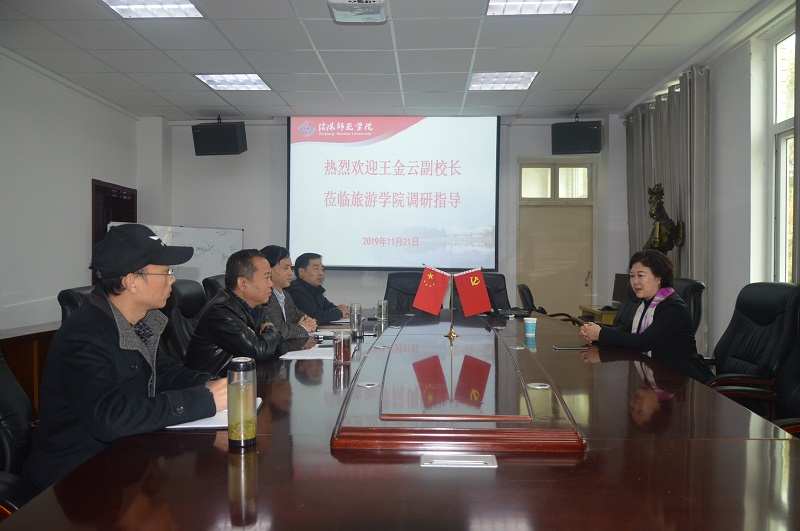 王金云对学院工作给予了充分肯定,并对学院进一步发展提出四点要求:一是坚持高层次人才引进与培养相结合,引导与鼓励年轻教师攻读博士学位;二是发挥旅游综合强的优势,培育新的学科增长点;三是深度挖掘和利用红色旅游资源,打造更有影响力的专业实践基地品牌;四是继续加大各级各类综合提升项目的申报力度,为学院建设筹措更多的财政专项资金。