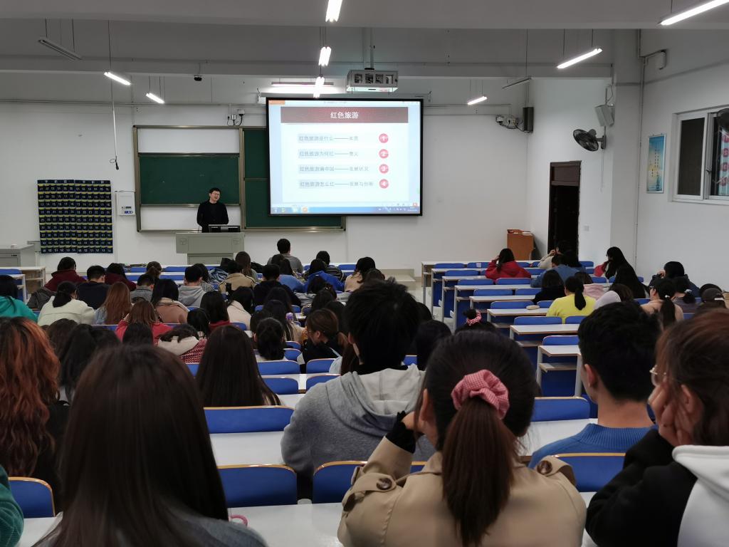 为了大力弘扬民族精神,加强同学们爱国主义情怀,坚定同学们的共产主义理想和信念, 四虎影院 余康博士于11月19日在社科楼215开展了“红色旅游”主题讲座,2018级全体学生参加了此次活动。