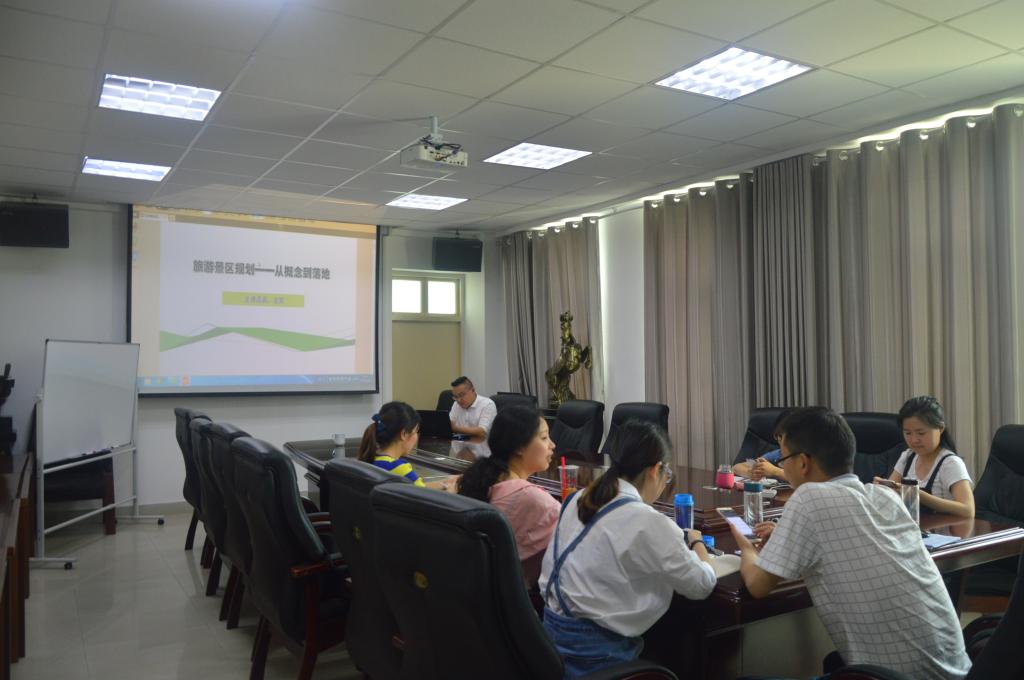 课堂上,庄军以“旅游景区规划——从概念到落到”为专题,从旅游景区规划的概念、策划、规划、落地等四个方面进行详细讲解。并与研究生就旅游行业的绿色发展、共享发展、大别山区旅游资源开发等问题进行了互动交流。通过本次学习,学生对投资旅游行业的思路、旅游产品如何逐层设计、相关利益主体的深度博弈等旅游规划中的问题有了更清晰的认识。
