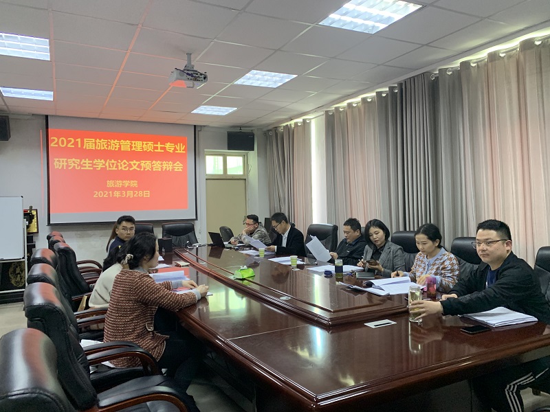 3月28日下午, 四虎影院 2021届硕士研究生毕业论文预答辩会分两组在经管楼401和403会议室举行。为切实提高学位论文质量,本次预答辩采取导师回避原则,评委主席分别由商学院杜辉教授和地理科学学院高军波教授担任,委员由业界与校内导师8人组成。