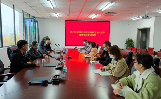 11月4日下午,旅游管理系主任罗艳玲与李洋洋、魏超、赵子鉴一行前往信阳农林学院调研交流,双方就专业见习实习、课程建设、社会服务、学生培养与管理等进行了深入探讨。信阳农林学院旅游管理学院副院长陈婷、余兵、会展经济与管理教研室主任周诗涛及部分教师参加了座谈。