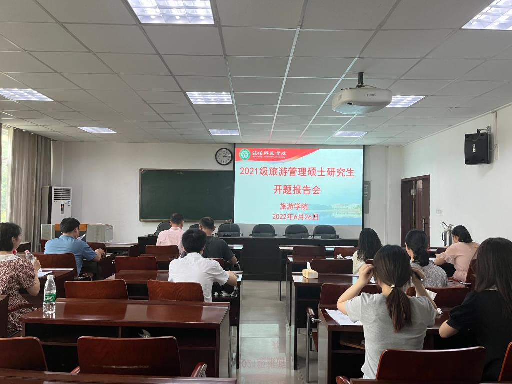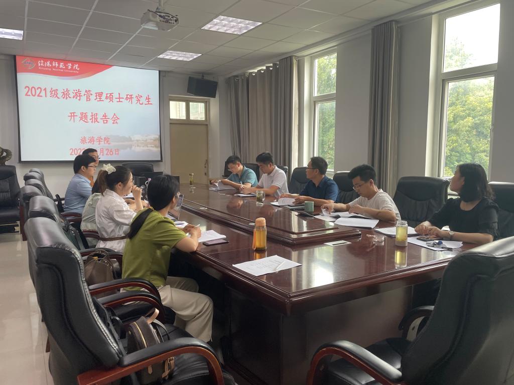 6月26日下午, 四虎影院 2021级旅游管理硕士研究生毕业论文开题报告会分3组在经管楼401、404和线上腾讯会议同时举行。彭荣胜、高军波和吴国琴教授分别任3组评审小组组长并主持报告会。