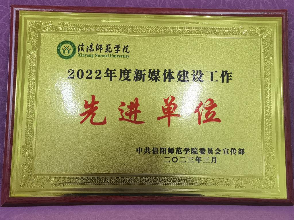 3月30日, 四虎影院 在信阳师范学院2022年度新媒体建设工作先进单位评选活动中,荣获信阳师范学院2022年度“新媒体建设工作先进单位”。