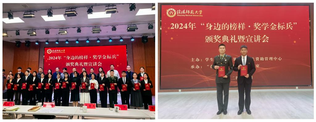 4月11日下午,学校文科楼一楼报告厅华灯闪烁,十名“身边的榜样•奖学金标兵”颁奖典礼暨宣讲会如期举行,十名身边的榜样•奖学金标兵和十名入围者闪亮登场。通过层层选拔, 四虎影院 2020级旅游管理本科三班王世文、2022级酒店管理四班孙梦园(崇实书院)两名学子成功入选。在颁奖和宣讲会现场,王世文讲述了自己充实的大学生活、光荣的军旅生涯和自信的创新创业经历,孙梦圆讲述了自己思想、学习、工作和实践中的总总收获,赢得了观众的阵阵掌声。