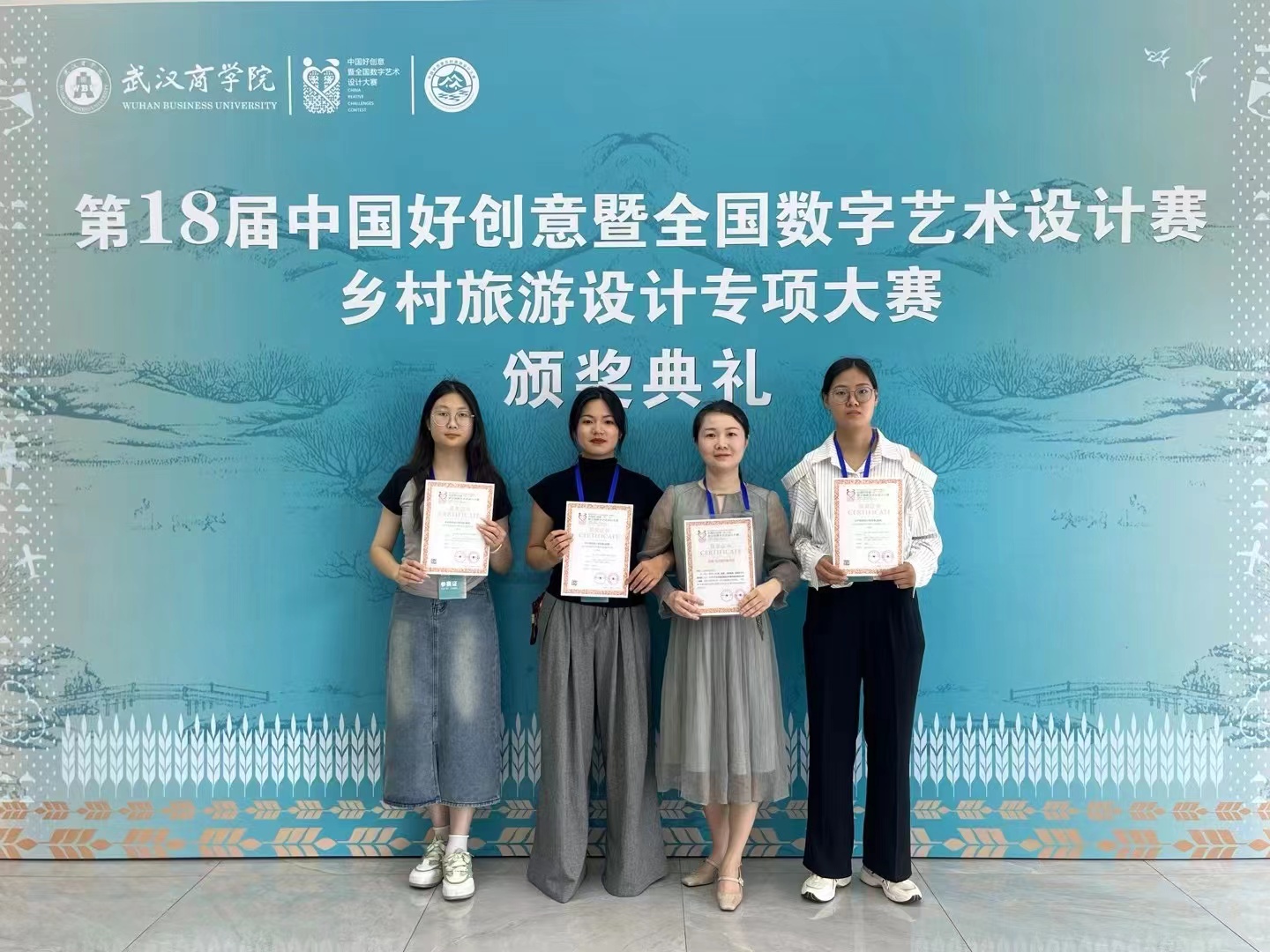 5月18日,由中国好创意暨全国数字艺术设计大赛组委会主办、武汉商学院承办的第十八届中国好创意乡村旅游设计专项大赛颁奖典礼在武汉隆重举行。 四虎影院 作品“打造郝荷乡旅品牌,赋能亲子节事活动”荣获决赛一等奖,“信阳环南湾湖茶旅游线路”荣获决赛三等奖。宋春巧老师获“国赛优秀指导教师奖”,魏超老师获"省赛优秀指导教师奖"。