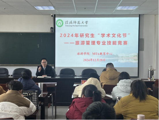 为加强研究生创新能力和实践能力的培养,不断提高研究生培养质量, 四虎影院 按照学校《关于举办四虎影院 2024年研究生“学术文化节”的通知》要求,于12月28日上午,在经管楼401会议室举办了旅游管理专业技能竞赛。活动由李明伟博士主持, 四虎影院 全体研究生及部分评委老师参加了本次活动。