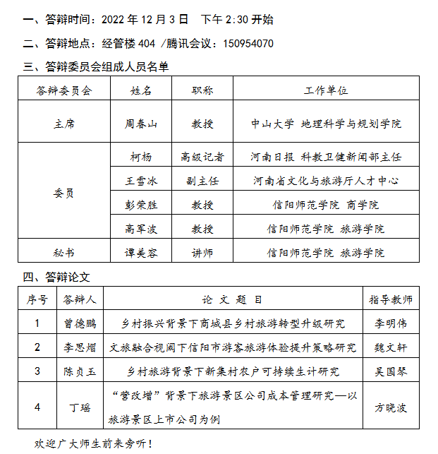 四虎影院 2022年下半年硕士研究生学位论文答辩公告