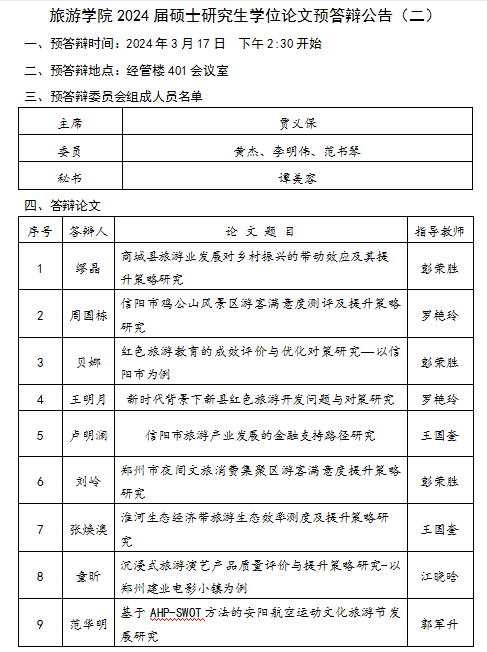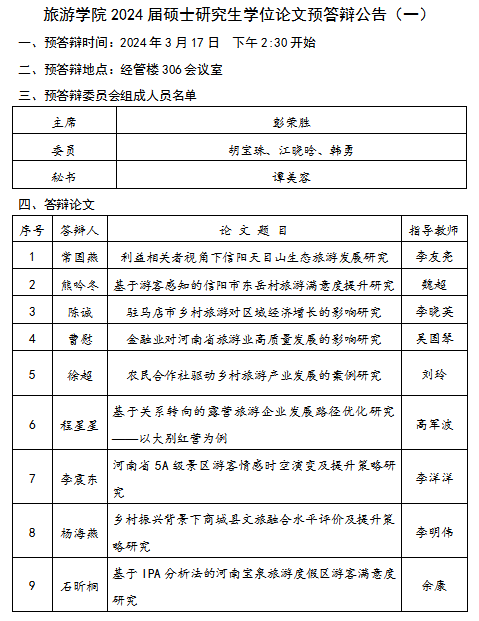 四虎影院 2024届硕士研究生学位论文预答辩公告