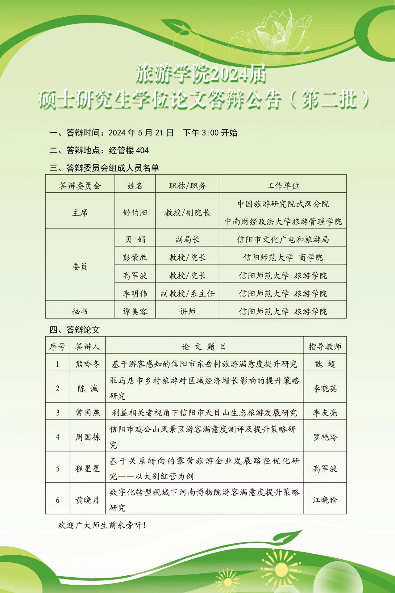四虎影院 2024届硕士研究生学位论文答辩公告(第二批)