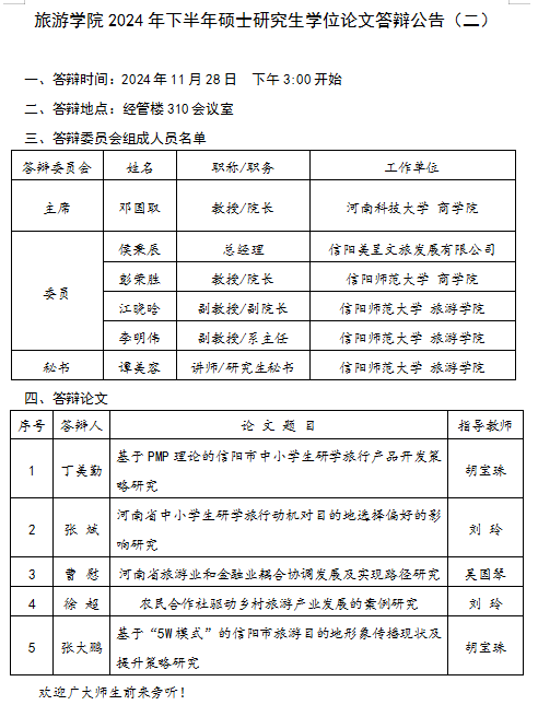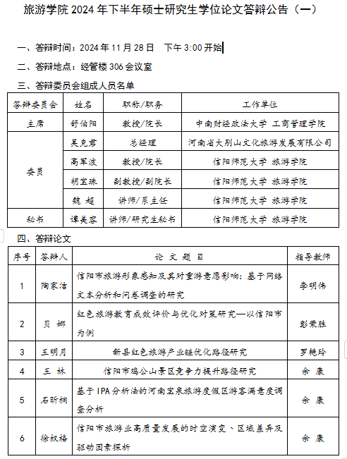 四虎影院 2024年下半年硕士研究生学位论文答辩公告