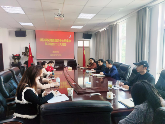 2022年10月21日下午,在经管楼404会议室, 四虎影院 党委理论中心组集中学习党的二十大报告,党委理论中心组成员、全体党支部书记参加。